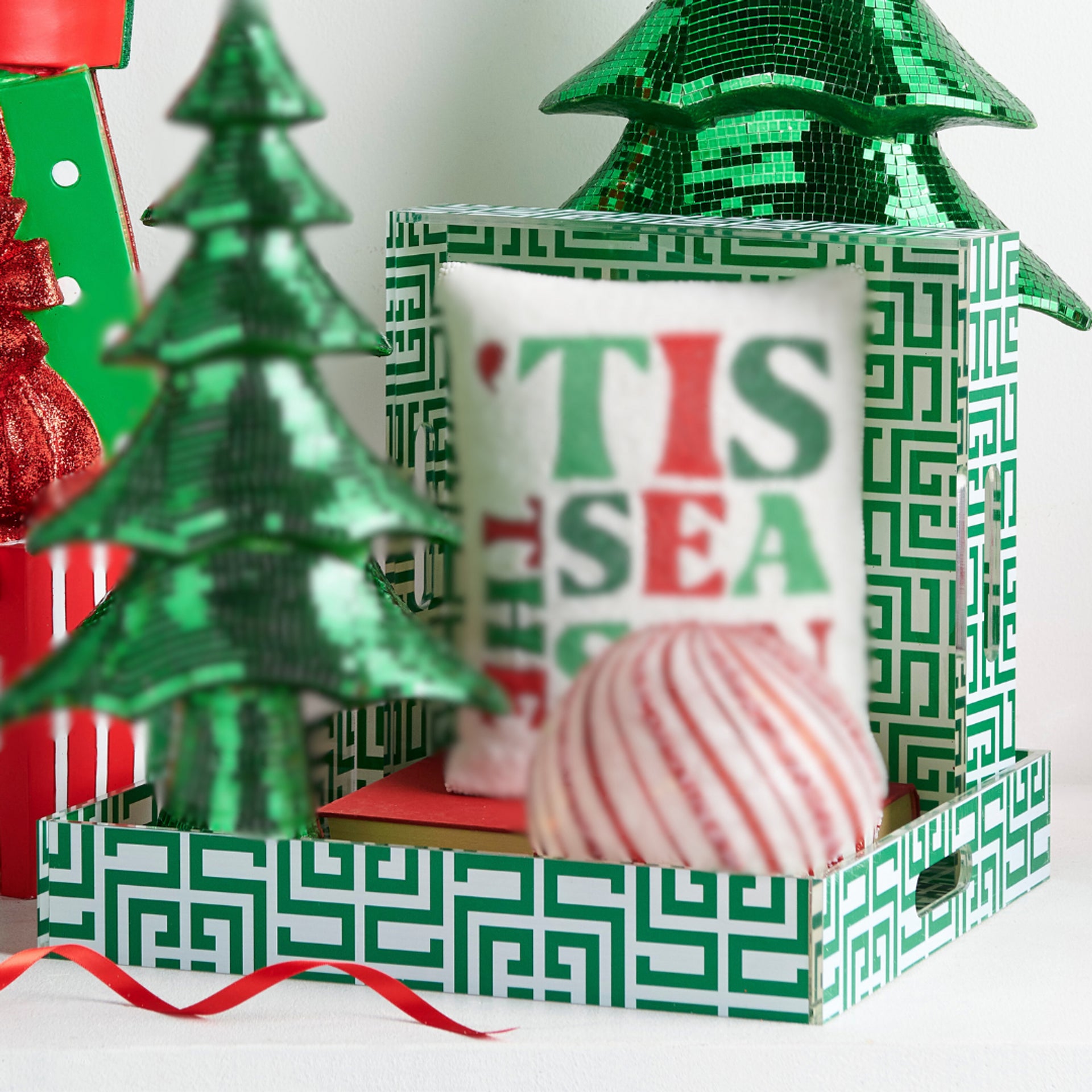 Use these gorgeous trays to elevate your coffee table this Christmas! Each one has a fabulous green and white greek key design and is perfect to place a few battery operated candles and your favorite Christmas figure!