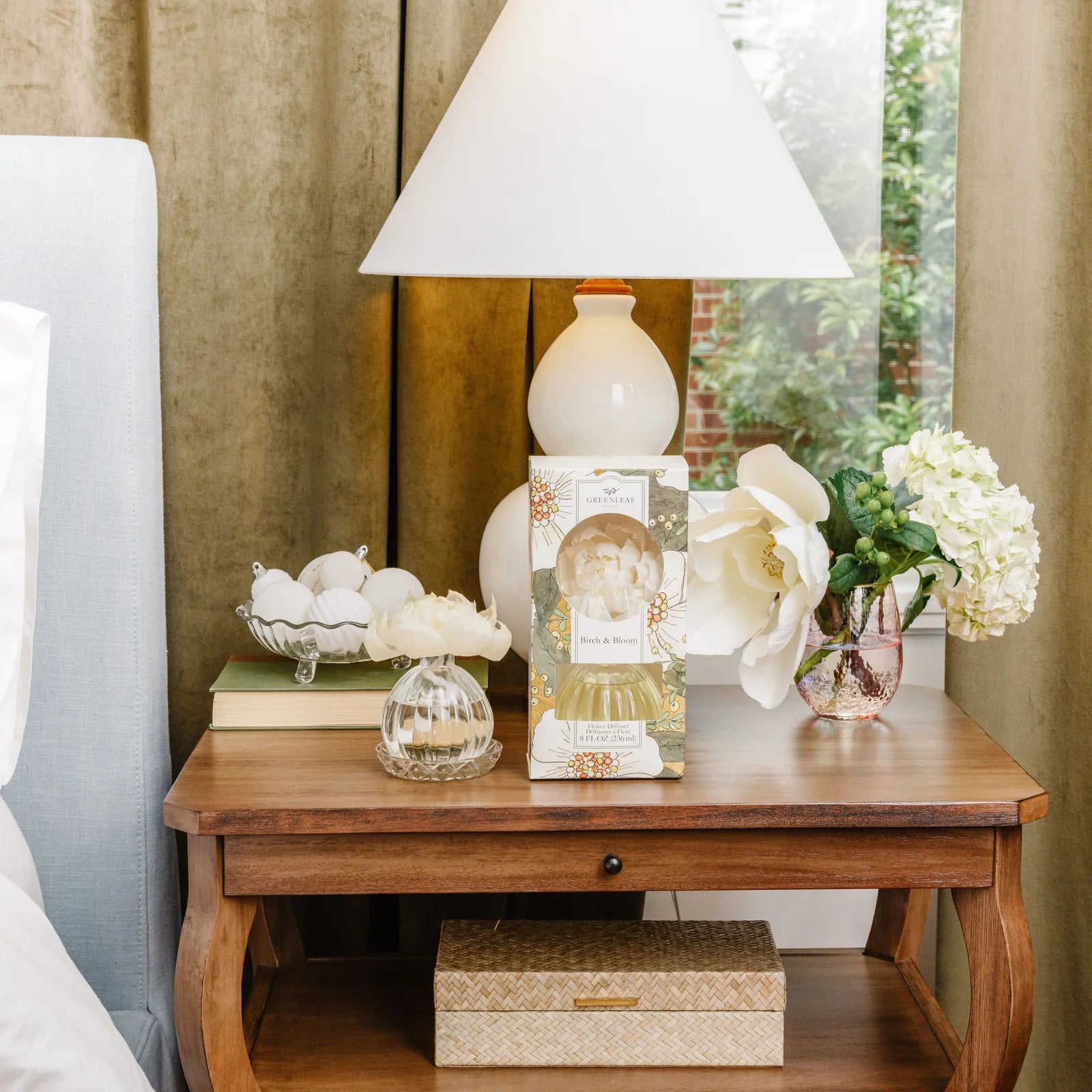 Our Flower Diffuser combines beauty and fragrance in one elegant display. Featuring your favorite Greenleaf scent and a handcrafted sola paper flower, it blooms as it diffuses—releasing fragrance for up to 60 days. As the oil travels up the wick, the flower gradually opens and softens in color, eventually resembling real petals. Housed in a clear glass vessel, it’s a stunning addition to any space.