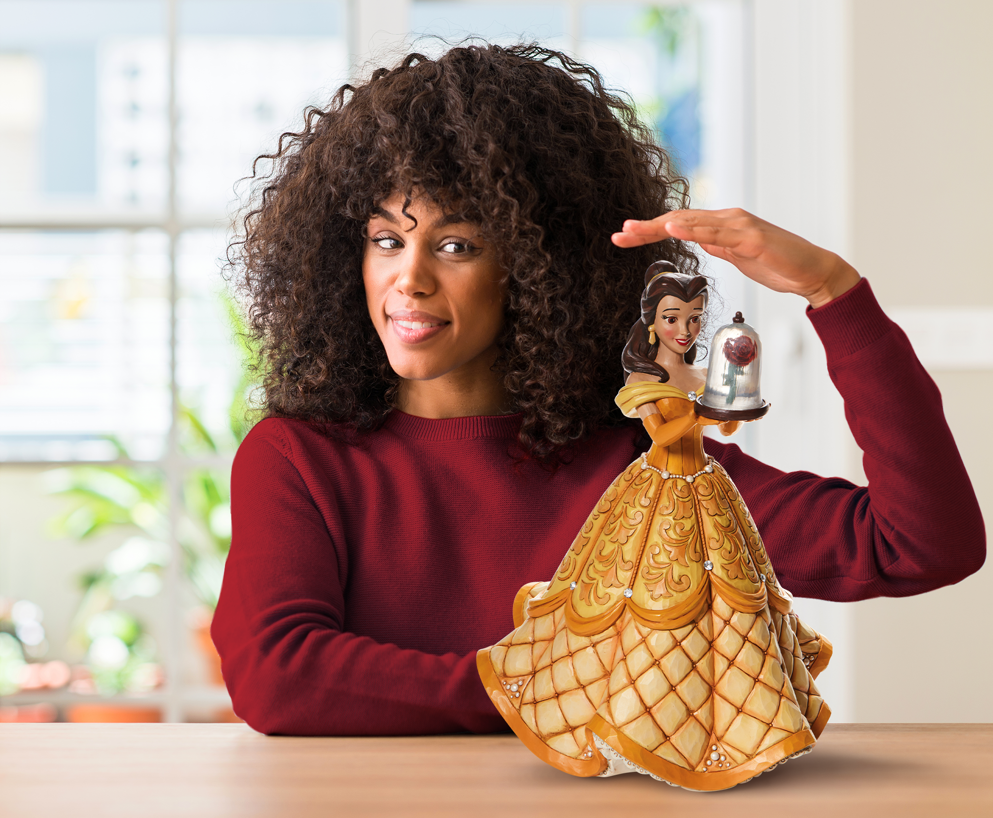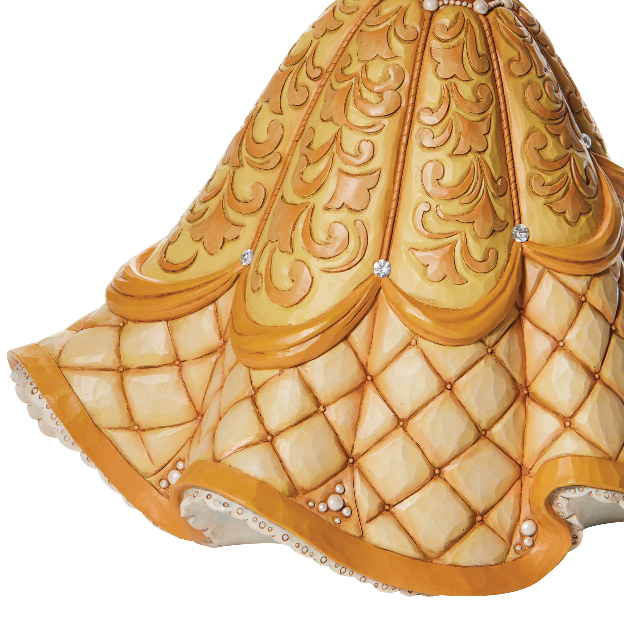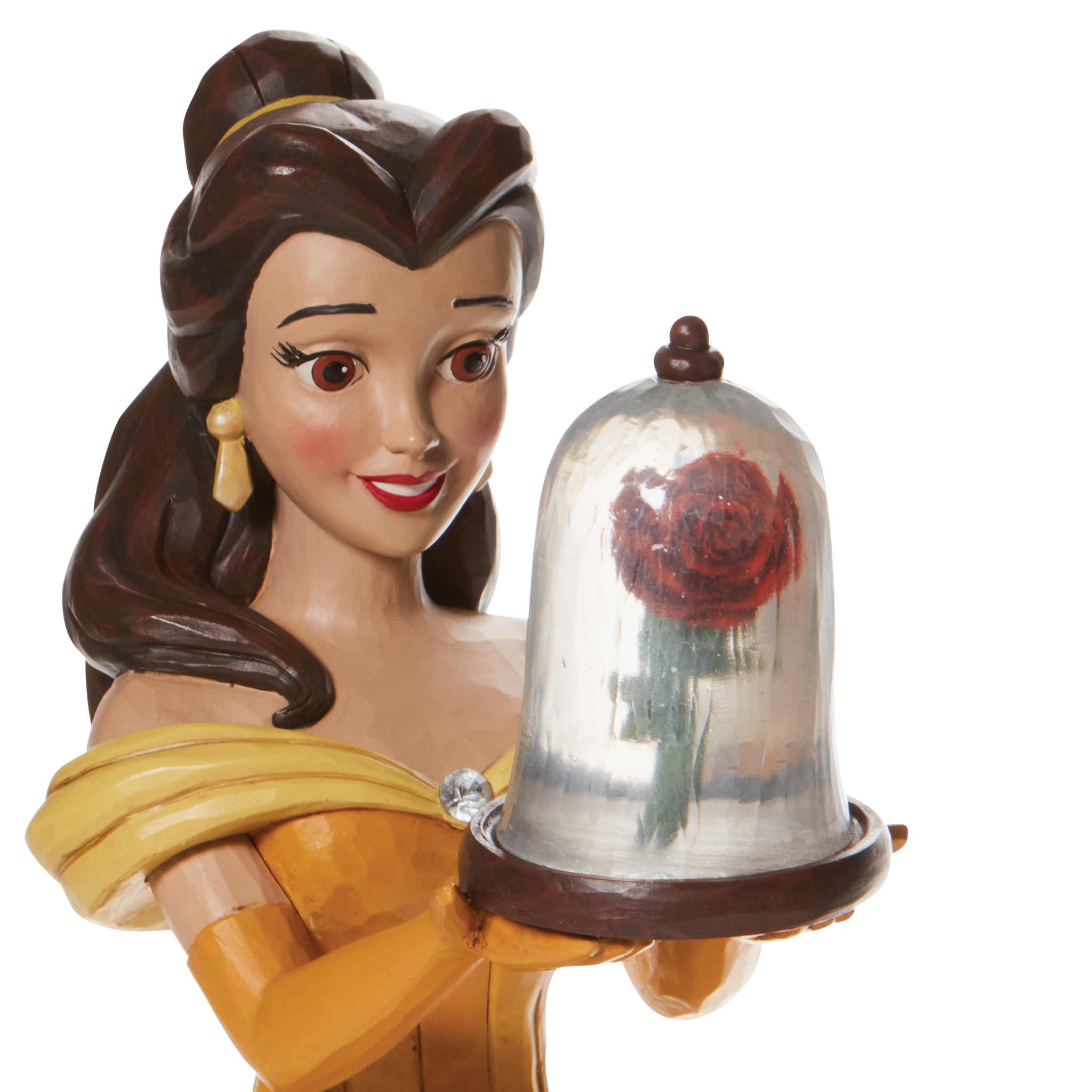 First in a Series of Deluxe figurines (The Enchanted Princess Series.) Designed by Jim Shore in celebration of Beauty and the Beast's 30th Anniversary 2021 is this striking 38.0cm Belle figurine, Belle looks stunning in her characteristic golden ball gown, embelished with pearls and swarovski crystals. Features a clear cloche with symbolic red rose.The tale of Beauty and the Beast teaches that anything is possible through love and this piece really is the ultimate gift for any Disney enthusiast to show their love and add something extra special to their collection on this extra special anniversary year.