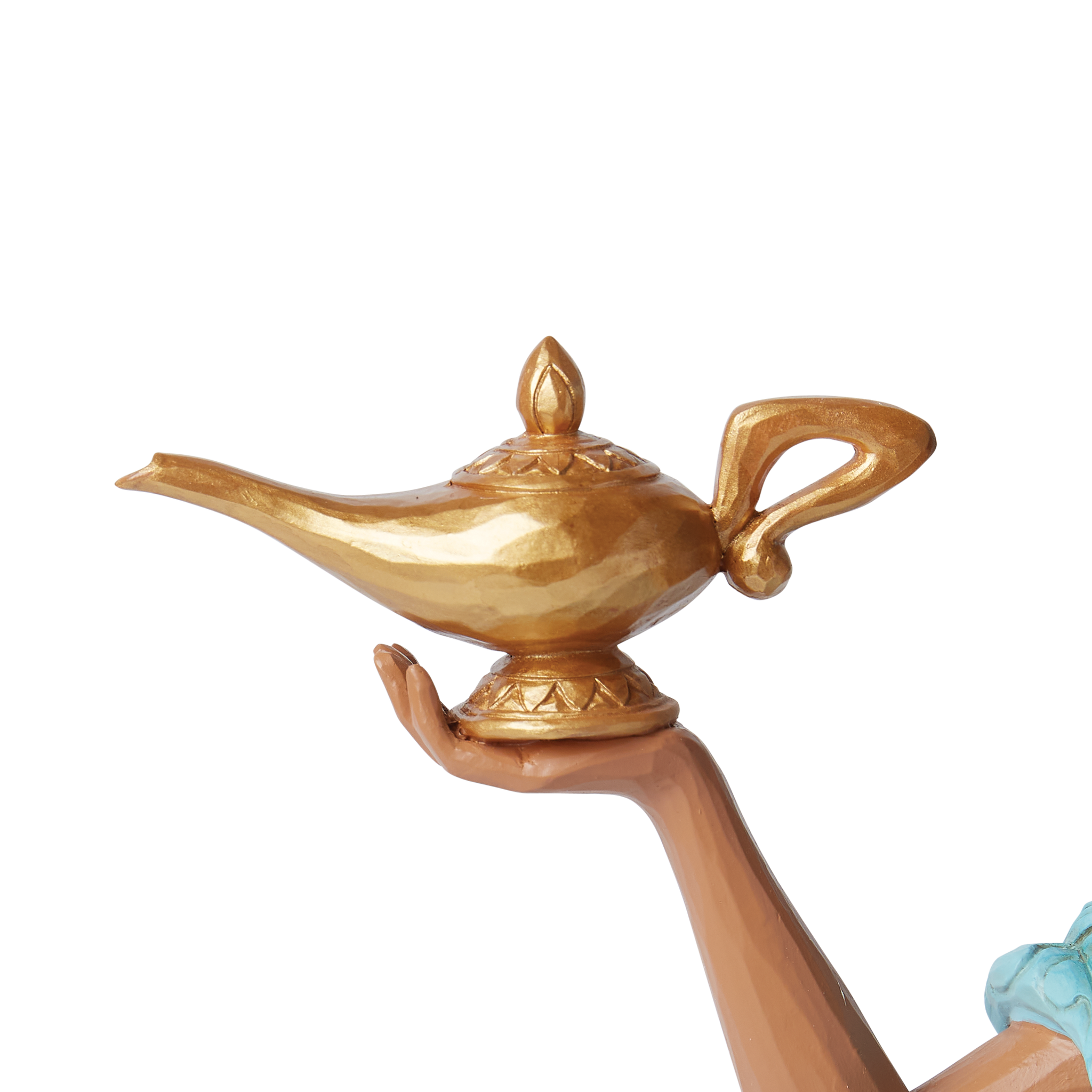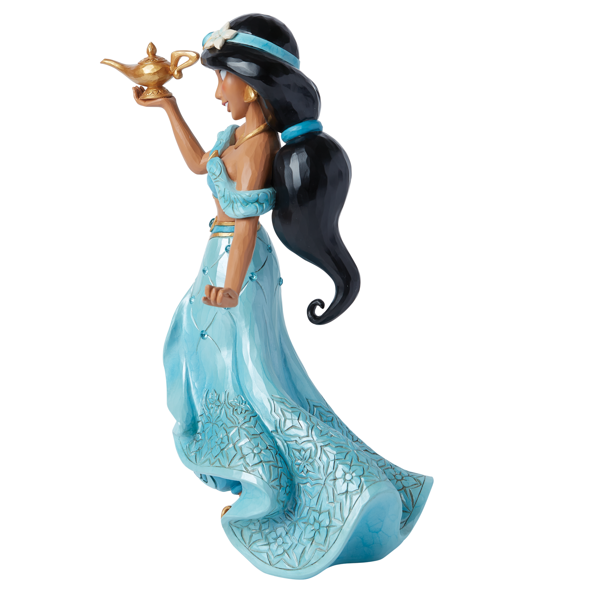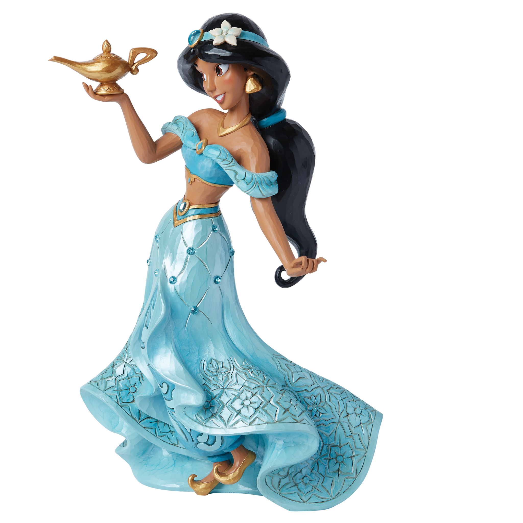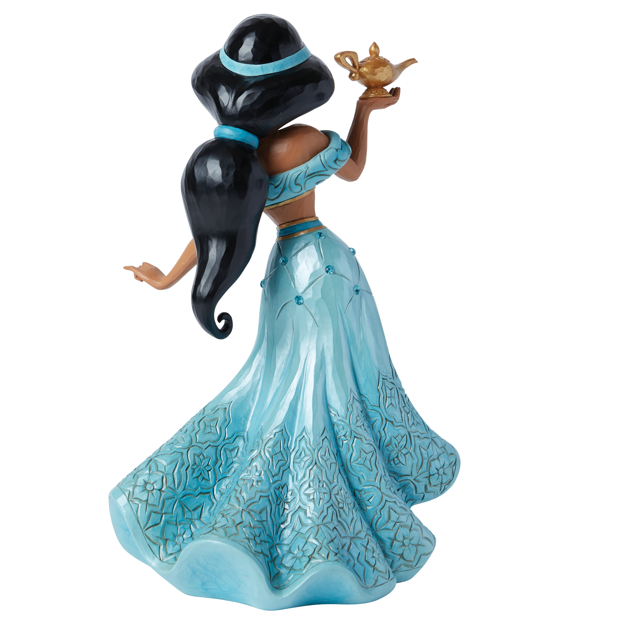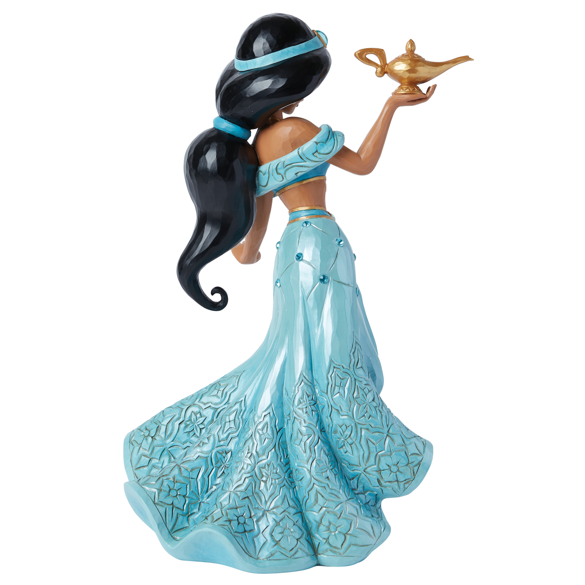 This deluxe Disney princess creation features Jasmine in an elegant rendition of her iconic turquoise crop top and flowing pants. Glitter details make the Jim Shore design come alive as Jasmine takes a closer look at Aladdin's lamp.