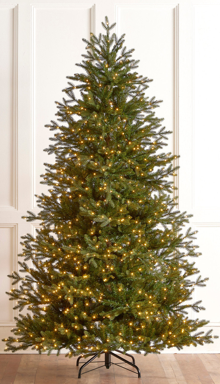 Make your Christmas the best decorated yet with a brand new Christmas tree! This Nordic Fir features gorgeous lush real feel realistic green branches. The branches on this tree are wrapped with small warm white LED lights! Made by Raz Imports. Includes replacement light strands, dimmable light strands, hinged construction, flame retardant, and 4 year warranty.